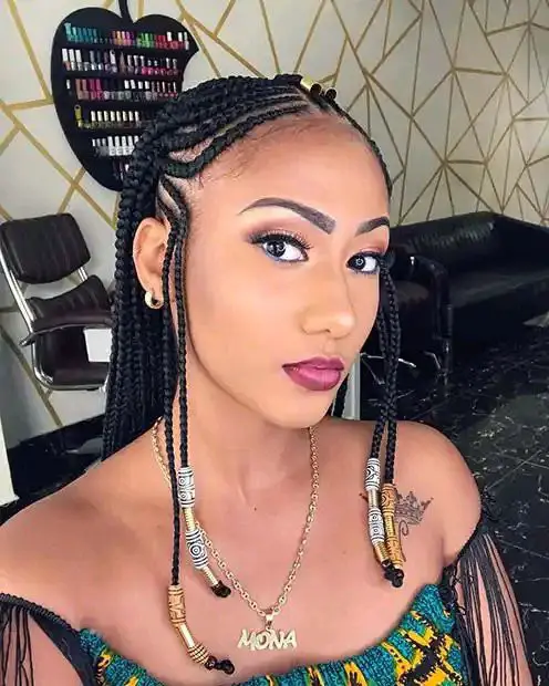 6. Beaded Fulani Braids: Elevate your Fulani braids with beads in various sizes and colors. Place them at the ends or intersperse them for a vibrant and eye-catching look.