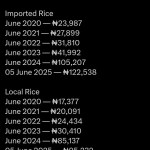 The data reveals a significant upward trend. Imported rice prices have risen from ₦23,987 in June 2020 to ₦122,538 in June 2025, while local rice has increased from ₦17,377 to ₦95,232 over the same period. Olusegun’s reaction, posted on June 6, 2025, questions the accuracy of these figures, suggesting a need to verify them against current market conditions across Nigeria.