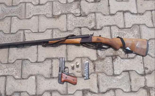 (Caption): The gun and the pistol recovered from them, as posted by the command today.