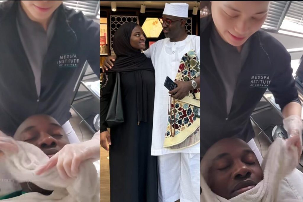 The father of four, who travels back and forth between Nigeria and the United States, posted a video of himself receiving spa treatment. The pleased parent disclosed that during his most recent visit to Minnesota, his daughter handed him the unique present.