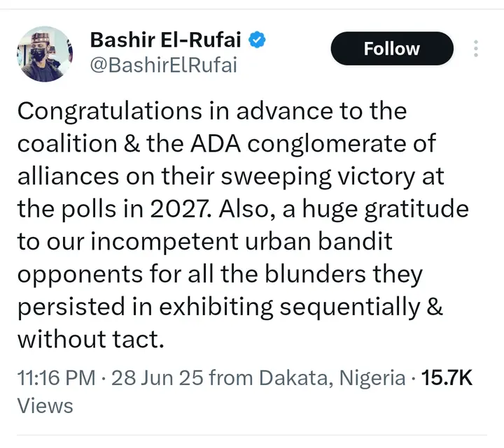 Bashir El-Rufai Congratulaes 2027 Political Coalition In Advance, Mocks Opposition