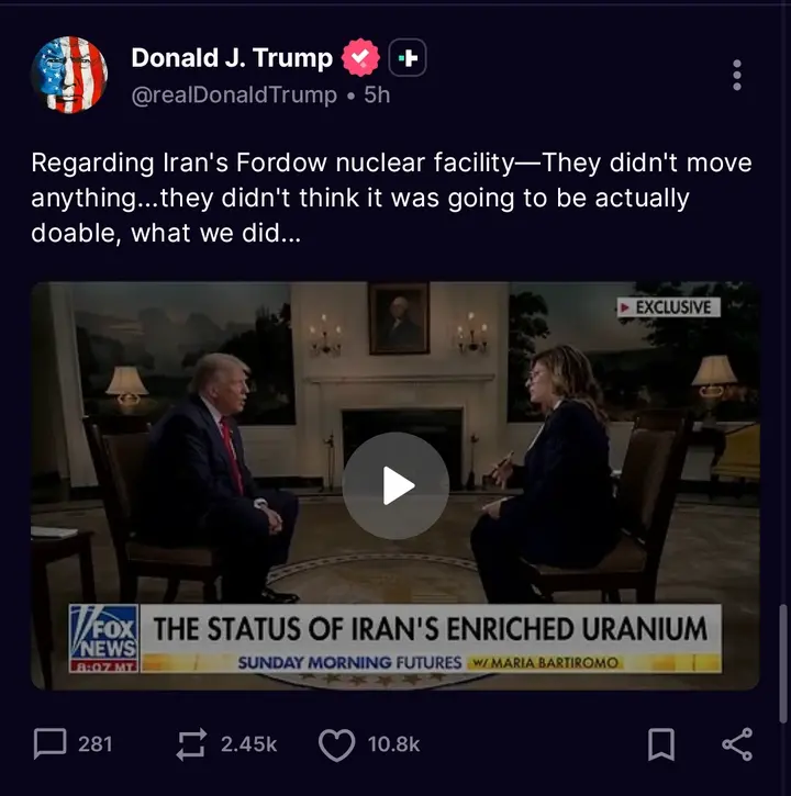 The strike was part of Operation Midnight Hammer, a coordinated military assault on June 22 that targeted Fordo, Natanz, and Isfahan—three key nuclear sites in Iran. Trump’s remarks came days after he declared that the mission had effectively “ended” Iran’s nuclear ambitions, at least for the moment.
