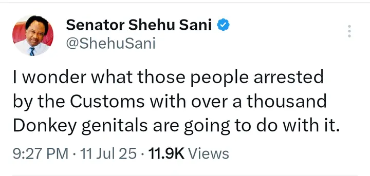 I Wonder What They’ll Do with Over 1,000 Donkey Genitals” – Senator Shehu Sani on Customs Arrest