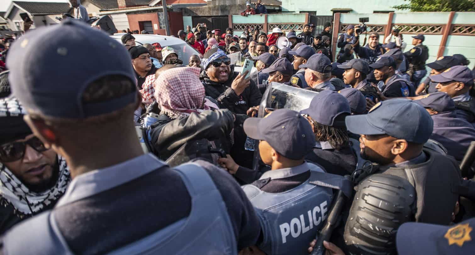 Public Order Police (POPS) had a tense moment with Pagad during the march against drugs and gangsterism on September 07, 2025 in Beacon Valley,Mitchell’s Plain, South Africa. The march aimed to create an awareness on a safe and harmonious Mitchell’s Plain, the Cape Flats and the entire province. (Photo by Gallo Images/Brenton Geach)