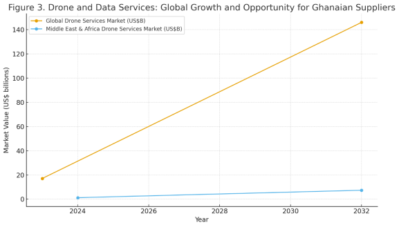 Africa is participating in this expansion, though from a comparatively modest base. The continent’s drone market was valued at about 1 billion US dollars in 2024 and is expected to grow to roughly 9.3 billion US dollars by 2033. Across the broader Middle East and Africa region, drone services alone were estimated at approximately 1.25 billion US dollars in 2024, with projections exceeding 7.4 billion US dollars by 2032. Mining and construction remain major drivers of this demand.