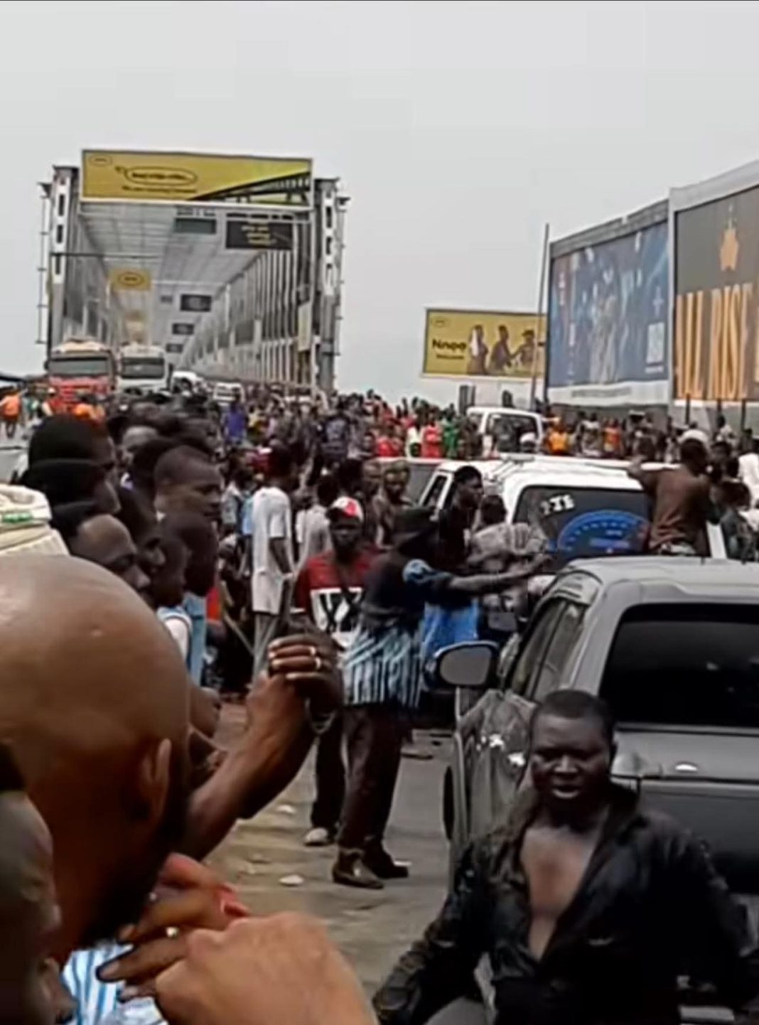 A video shared online showed protesters blocking access points to the bridge while chanting slogans such as, “No way in, no way out. Onitsha to Asaba blocked. Stand till!”