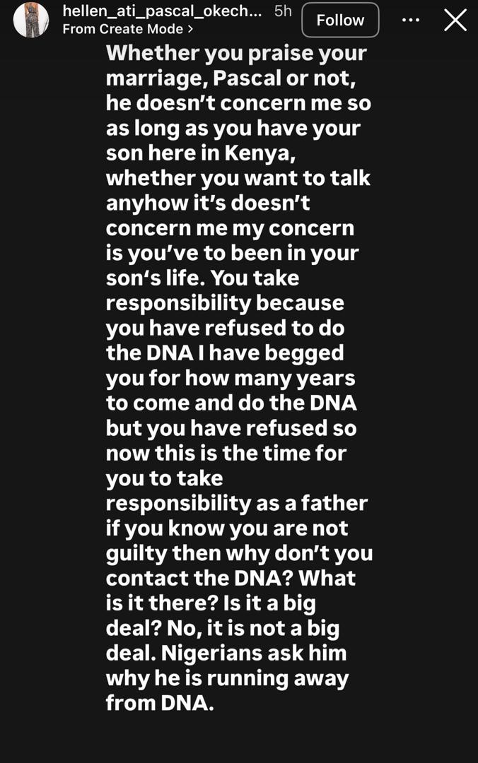 “Whether you praise your marriage or not, Pascal, it doesn’t concern me. As long as you have your son here in Kenya, that is my concern. Say whatever you like; it doesn’t move me.”