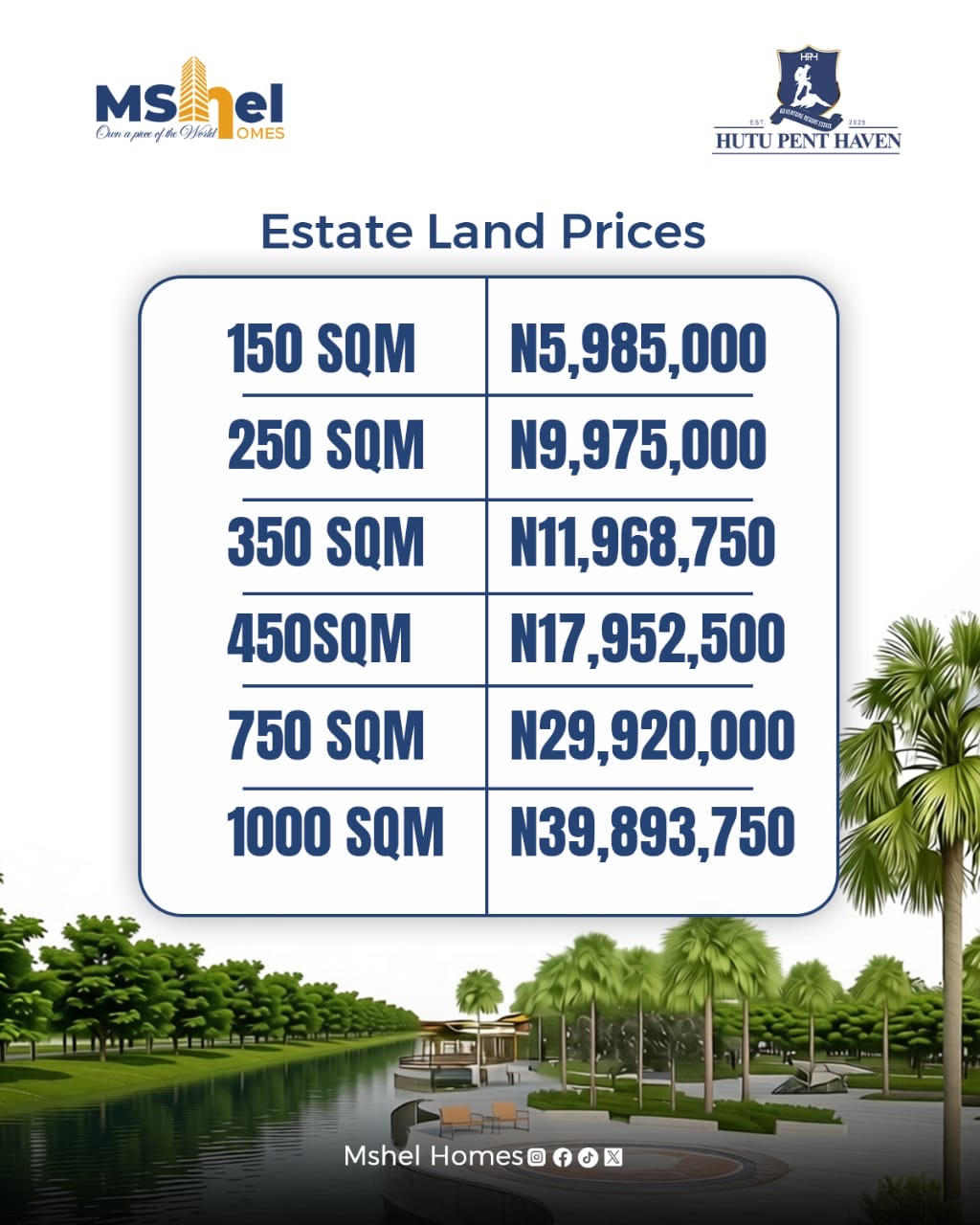 For details on land ownership and early investment entry into Hutu Pent Haven, interested parties can contact @mshelhomes on Instagram or call 08077779287 or 08104444229 to begin with clarity.