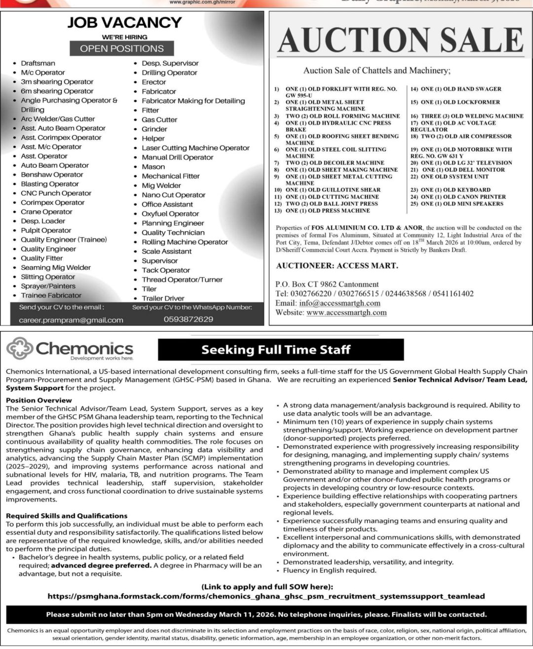 The post Tuesday: Advertised Jobs In Newspapers Today appeared first on The Ghana Report.