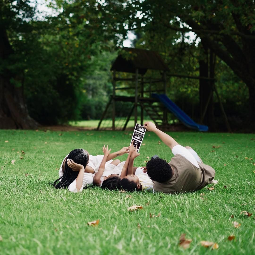 The couple shared the news on Wednesday, 15 April, via a joint Instagram post featuring tender family moments, Mpoomy’s glowing baby bump, their two young children, Nuri and Zani, and a sonogram image.