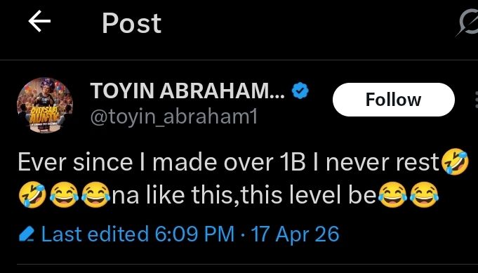 In a recent tweet, Toyin Abraham noted that since her movie crossed the N1 billion mark at the box office, she had been unrest.